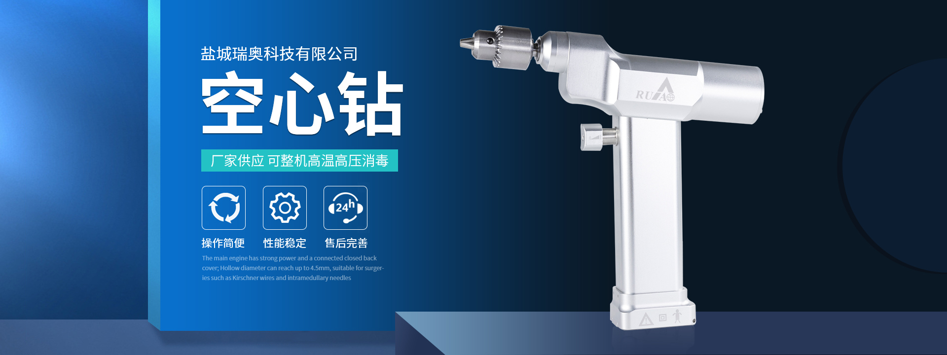 鹽城瑞奧科技有限公司主要產(chǎn)品:醫(yī)用電動(dòng)鋸鉆系列(可高溫高壓消毒和熏蒸消毒兩種):包含骨鉆、擺鋸、胸骨鋸、空心骨鉆、開顱鉆、顱骨銑等等,適用于骨科、腦外科、神經(jīng)外科、胸外科、手足及顯微外科、脊柱外科、整形外科等各種手術(shù)的要求。電動(dòng)石膏鋸可切割高分子繃帶、石膏等。基礎(chǔ)器械系列:咬骨鉗,髓核鉗,椎板咬骨鉗,持骨鉗,四肢骨折手術(shù)器械包等。